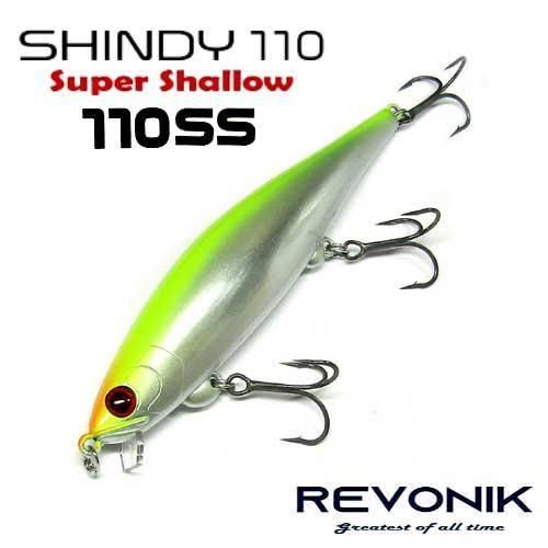 SHINDY 110 SuperShallow (シンディ110スーパーシャロー) Length:110mm Weight:14g Type:SlowFloating Depth:50cm(超シャロー対応) 「シャロー攻略のために潜らせず、足元までしっかりアクションするミノーが欲しい」 琵琶湖プロガイドと海外釣行のエキスパートである高田”ビックリマン”雄介氏と、琵琶湖ロコの凄腕として知られる吉田聡氏の2人の若手アングラーのリクエストを加藤誠司の経験と技術で具現化させたシンディ110 Super Shallow。 潜行深度は約30cmで一定速度でのリトリーブでも、左右にダートさせるジャーキングでも潜りすぎずにレンジキープすることで、岸釣りでも着水地点から足元までバイトチャンスを生み出します。 バスはもちろん、シーバスやビッグトラウトへの期待が広がる「有りそうで無かった」超シャロー対応ミノーです。
